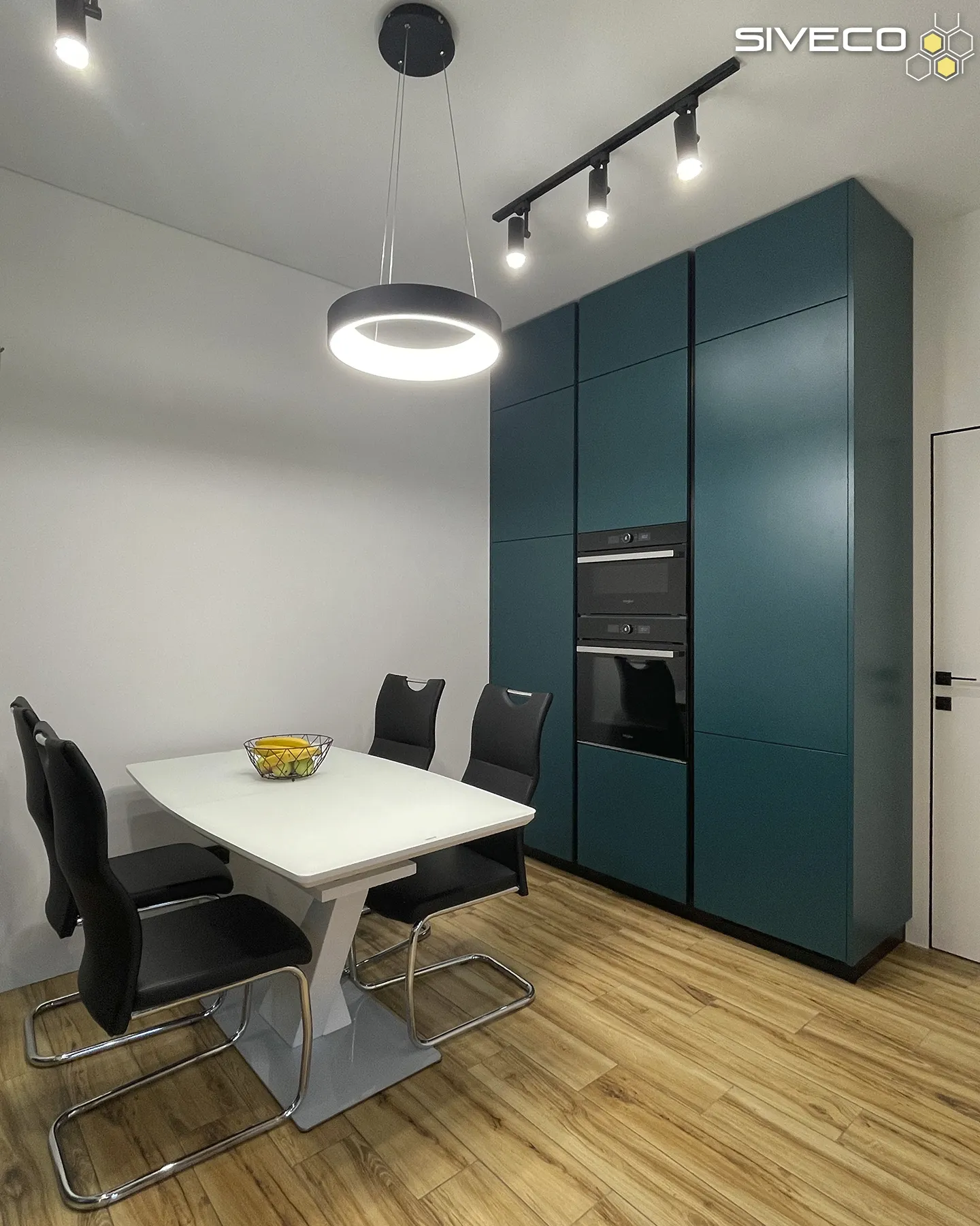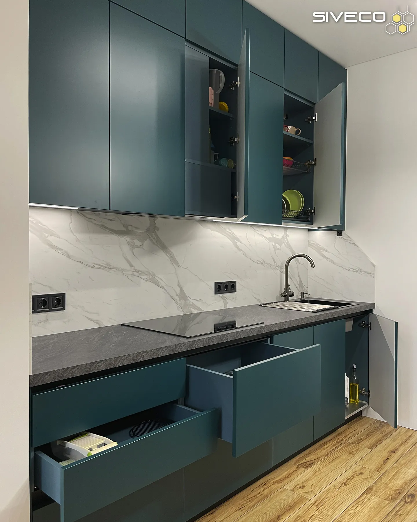 Кухня вийшла максимально практична та елегантна. Родзинкою цієї кухні, однозначно, є колір. Сміливе рішення, згодні?