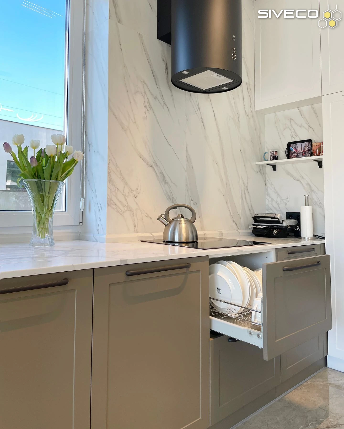 Ми використали зносостійкі матеріали, стійкі до пари та вологи. Фасади легкі у догляді (на матових поверхнях не залишаються відбитки пальців), а фурнітура з дотягувачами забезпечує безшумну роботу всіх механізмів, перетворюючи готування на медитативний процес.